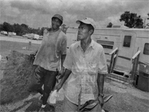 ON THE MOVE: Renaissance Village trailer park resident, right, and friend Larry Jackson haul items to the trash as Williams prepares to move to an apartment. Of 575 units at the FEMA park in Baker, La., 27 were still occupied on Saturday. |
